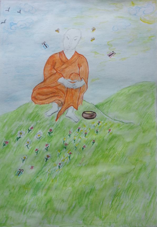 Ananda was Buddha’s cousin as well as one of his closest disciples. Though Buddha had different assistants, they were not always around. When Buddha was 55 years old he felt that he was getting older and needed an assistant to help him with his affairs. When the sangha gathered to discuss the matter many suggested themselves; only Ananda remained silent. Buddha made his choice of Ananda for his modesty, devotion and purity of intentions. Buddha and Ananda were of approximately the same age. For the following 25 years, until Buddha’s death, Ananda followed Buddha everywhere, cleaned his abode, helped in everyday and sangha affairs, and tried to remember every word of his Teacher. In spite of direct and almost constant closeness to Buddha, and having attained the first level of realization (“entering the stream”), Ananda made little additional progress in his spiritual path. Buddha’s other disciples moved forward and attained enlightenment, but for Ananda this state was unachievable and this fact saddened him. From sutras we learn that Ananda’s doubts were dispelled when in Buddha Shakyamuni’s presence he had a vision of Sukhavati, Buddha Amitabha’s pure land. In Mahaparinibbana sutra there is an episode where Ananda, after learning Buddha’s intention to leave this world, is begging him to stay, but Buddha remains adamant. “Ananda said this to the Gracious One: “Let the Gracious One remain, reverend Sir, for the lifespan, let the Fortunate One remain for the lifespan, for the benefit of many people, for the happiness of many people, having compassion on the world, for the welfare, benefit, and happiness of Divinities and men.” “Enough, Ananda, do not beg the Realised One, now is the wrong time, Ananda, for begging the Realised One.”… “At one time, Ananda, I was living at Rajagaha on the Vulture’s Peak Mountain…, in that place, Ananda, I addressed you, saying: …Whoever has developed, Ananda, made much of, carried on, established, maintained, augmented, and properly instigated the Four Paths to Power, could, if he wanted, remain for the lifespan or for what is left of the lifespan. The Realised One has developed, Ananda, made much of, carried on, established, maintained, augmented, and properly instigated the Four Paths to Power. If he wanted, Ananda, the Realised One could remain for the lifespan or for what is left of the lifespan.’ But despite such a gross hint being made by the Realised One, such a gross suggestion being made, you were unable to penetrate it, and did not beg the Realised One, saying: ‘May the Gracious One remain, reverend Sir, for the lifespan; may the Fortunate One remain for the lifespan, for the benefit of many people, for the happiness of many people, out of compassion for the world, for the welfare, benefit, and happiness of Divinities and men.’ If you, Ānanda, had begged the Realised One twice the Realised One might have rejected your speech, but would have accepted it on the third occasion. So, Ānanda, there is this wrong-doing for you, there is this fault for you.” It is as if Buddha is blaming Ananda for being insensitive and refuses his request, reminding him about the impermanence of all things, saying: “Did not I tell before, in other situations that sooner or later we have to part with what is dear to us, with what is close to our heart, that we will have to leave it forever?” Buddha predicted that after his death Ananda will attain enlightenment and so it happened. Ananda became the second Buddhist patriarch, “the Knowledge keeper”, and most of “Pali Canon” and “Sutta Pitaka” were recorded from his words. It is owing to him that we can read Buddha’s words now. Among Buddha’s other disciples Ananda’s personality is notable for his imperfection. For a very long time he was unable to attain liberation. He also was troubled by the death of Sariputta, his close friend. After Buddha’s death he felt loneliness and isolation and doubted his own ability to attain liberation. This imperfection makes Ananda’s image so close and human to us, showing that the path to liberation from suffering is accessible to all who are sincere and devoted in their service. In this way imperfection itself becomes a ground for liberation. So it was in Buddha’s days and so it is in our days. Comments: When we discussed the story of Ananda with my Teacher, Vova Pyatsky, he made the following comments: Ananda was a devotee, a voluntary servant of Buddha, but at the same time he felt as if he were isolated from the world, even as if he were a failure. He had no personal life, he did not have even minimal freedom like freedoms of other monks who received initiation. All of his time and power he devoted to service to Buddha, often in very common everyday affairs, affairs which he did not demand high thoughts on Dharma and prolonged hours of meditation. Even though Ananda had an intellectual understanding that his situation was in fact a privilege and honor for him, he still felt himself like an outcast. He felt disgraced by his position as a servant. While others attained insights and realizations Ananda, though being so close to Buddha and remembering his every word, seemed to lose even the slightest hope for liberation. No wonder that sadness and depression settled in his heart. Already knowing about the approach of his own death Buddha reproaches Ananda with insensitivity: in “Mahaparinibbana sutra”. He says to Ananda that before it was time to ask Buddha to delay his departure, but at that moment it’s too late as for so long they were together. And when Buddha was drawing Ananda’s attention to beautiful places he was sort of saying: “Ananda, wake up, look at this place, where I am present. Your consciousness is present here as well. You are not to leave it.” In this way Buddha was indirectly pointing to Ananda’s heart. In numerous mirrors Buddha was showing Ananda the beauty of the nature of mind. We